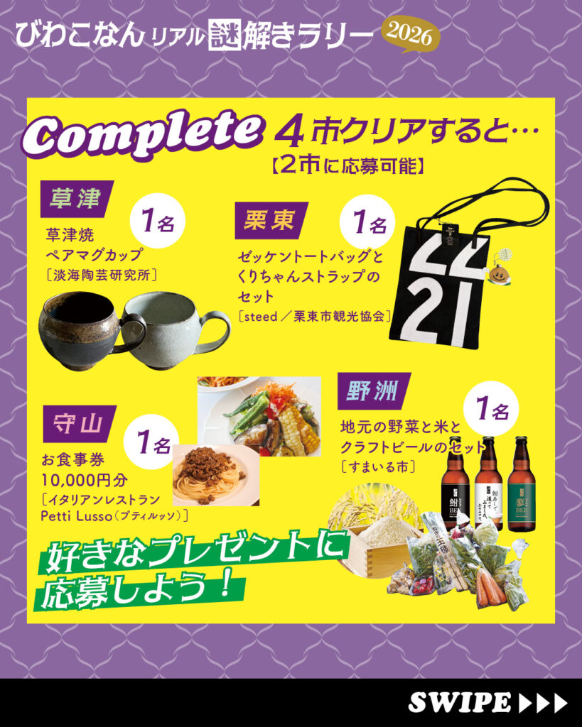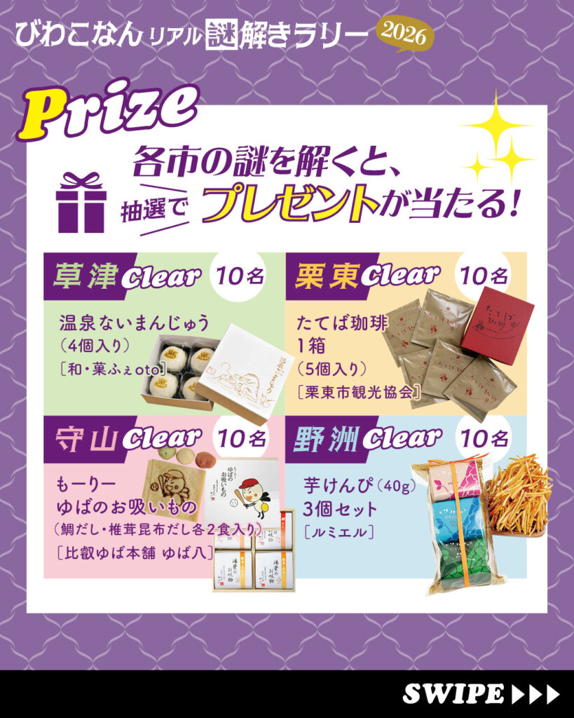 昨年度に引き続き、湖南四市(守山・草津・栗東・野洲)でリアル謎解きラリーを開催。