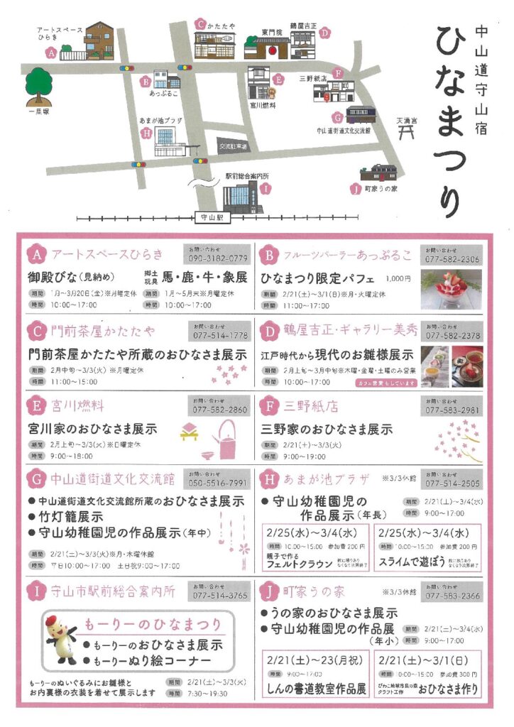 2026年2月21日~3月4日まで「ひなまつり」をテーマに中山道守山宿周辺にて趣向を凝らしたイベントが開催されます。